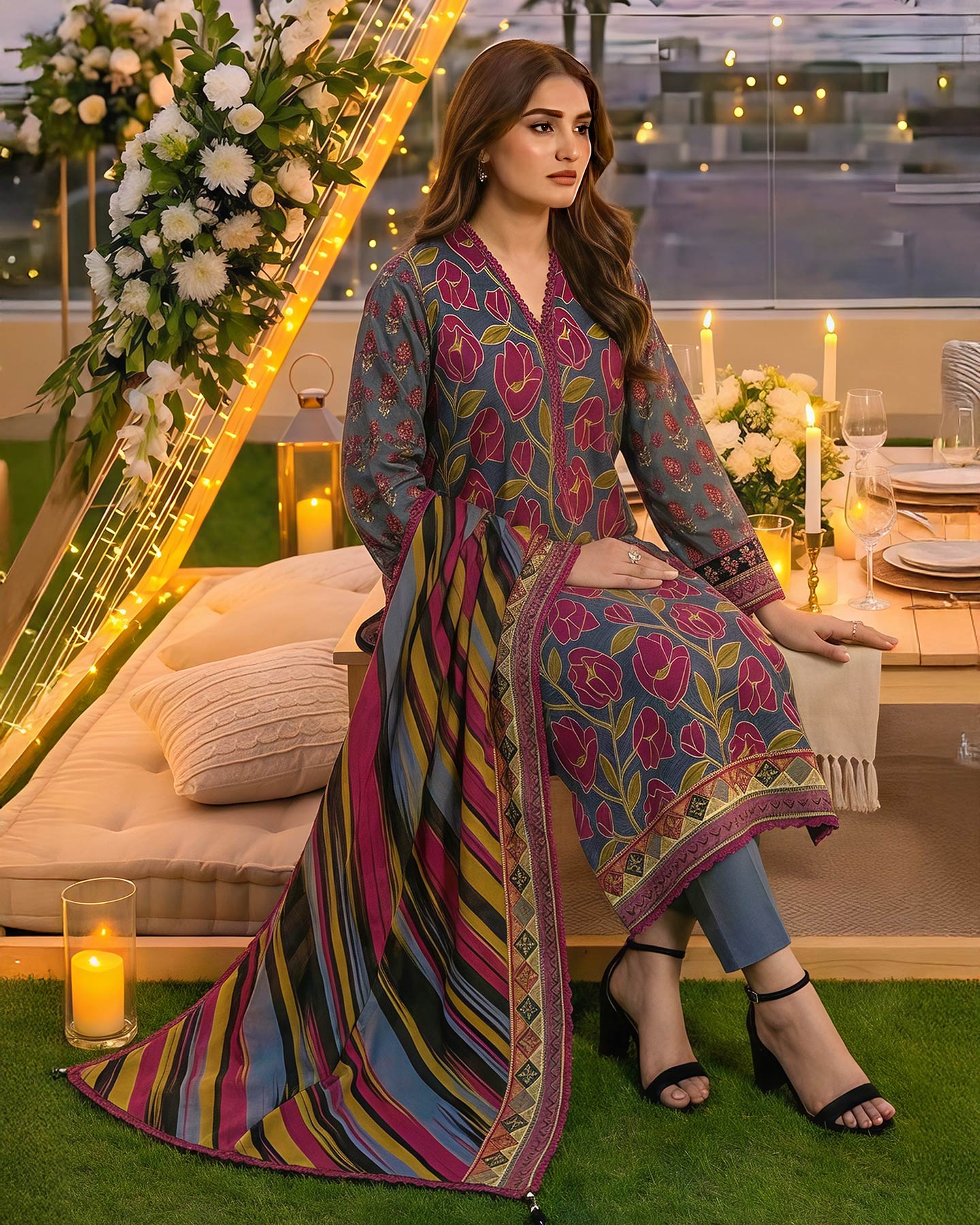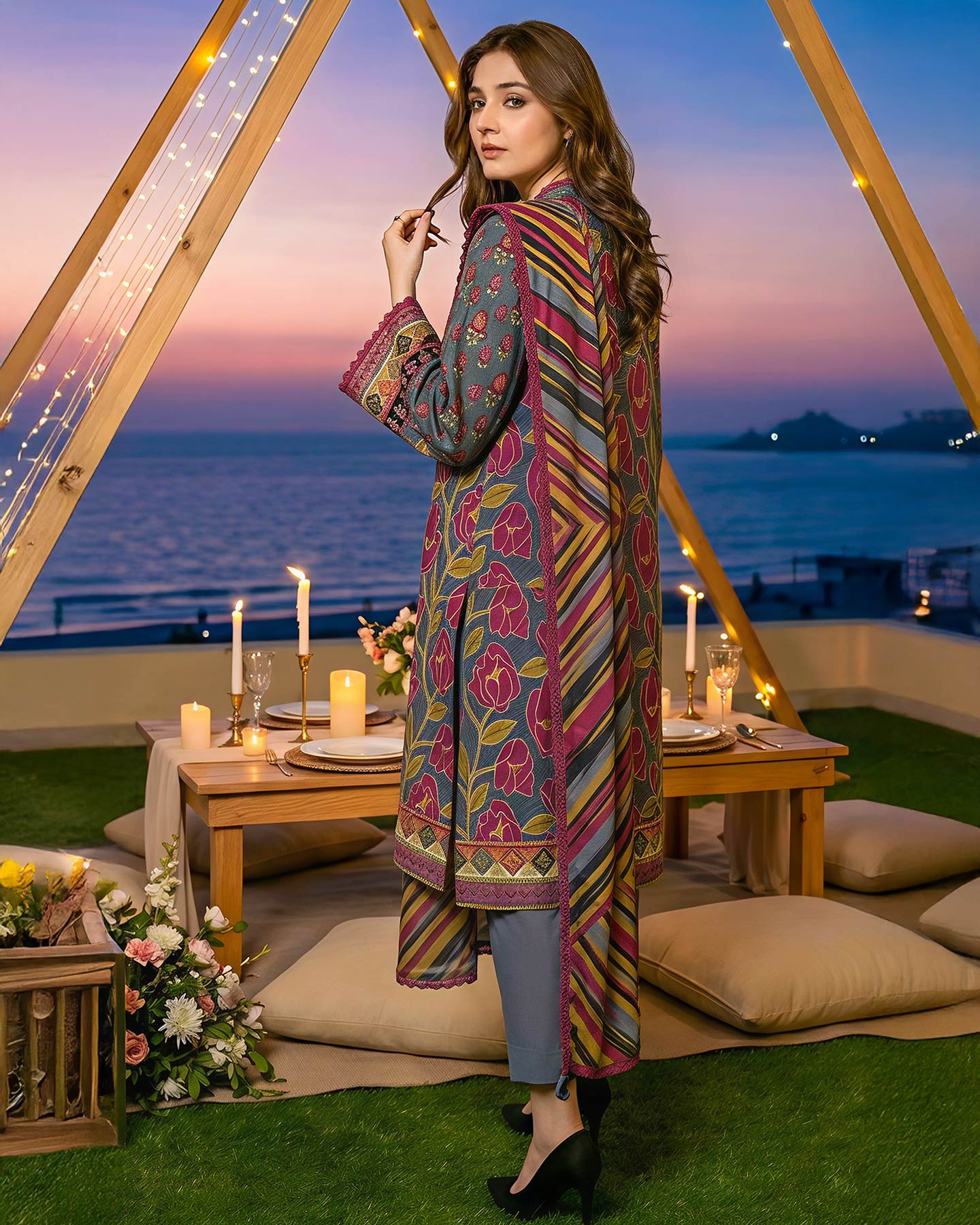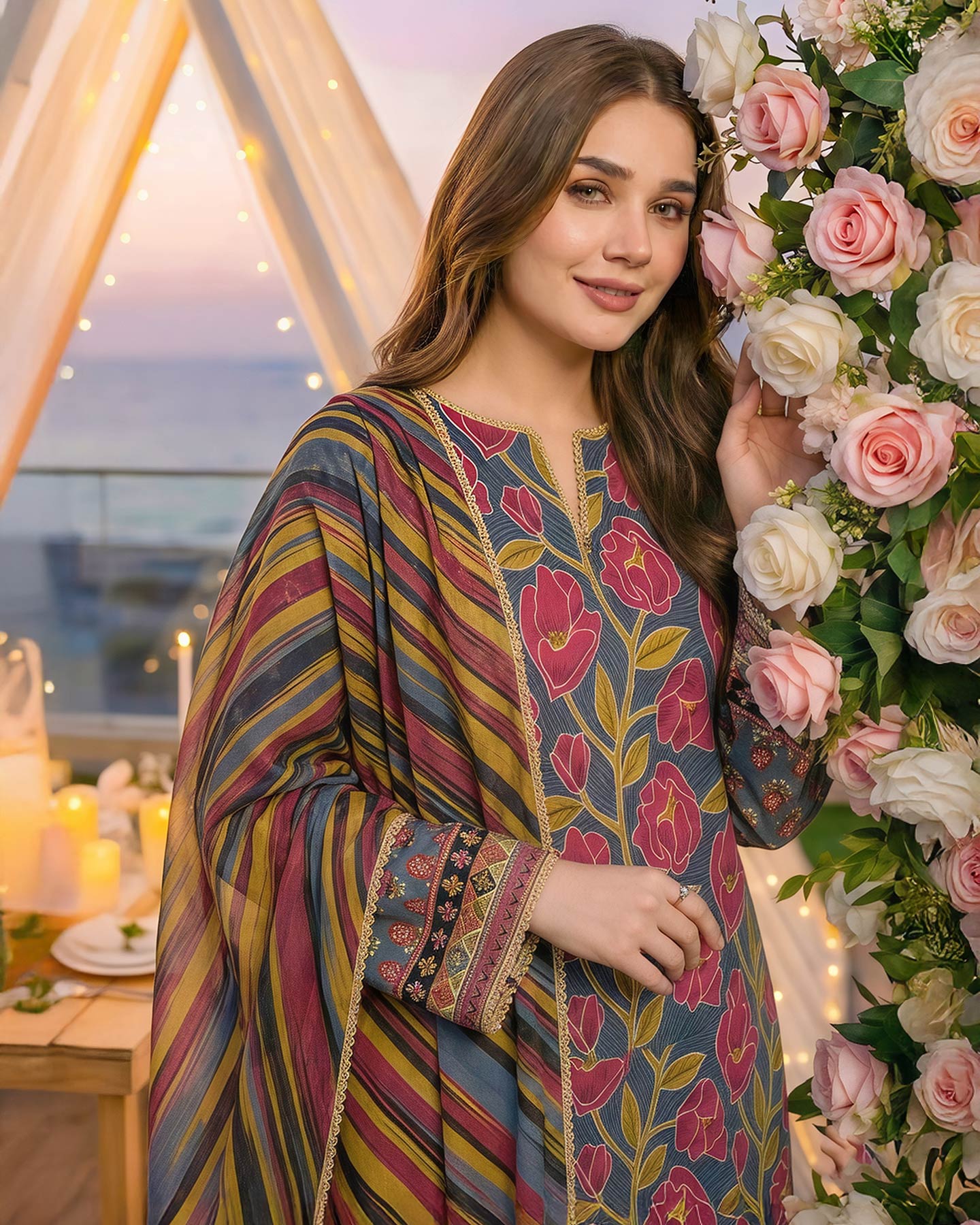 Note : Embroidery shirt have been styled in the image for photography and illustrative purposes. The standard style comes as a long sleeved kameez.